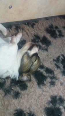 Mädel 1 am 2. Tag. Sie hat rechts einen Fleck und hinten links am Popo: