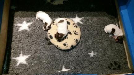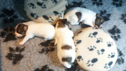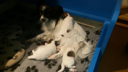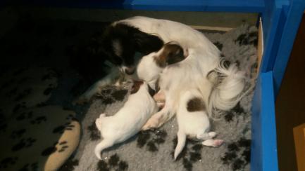 Am 7.11.2018 hat uns Chilli in gerade mal 1 1/4 Stunden 3 gesunde Welpen geschenkt. Es sind alles 3 Mädels. Bei der mittleren sah es anfangs ein wenig kritisch aus, aber jetzt holt sie kräftig an Gewicht auf.