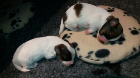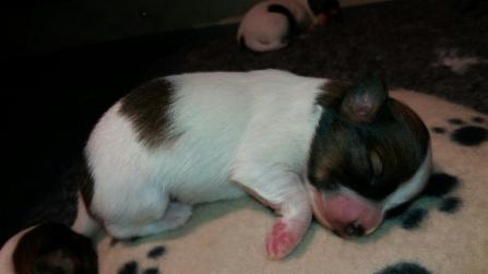 Tag 10 - alle Welpen sind weiß-rotzobel: