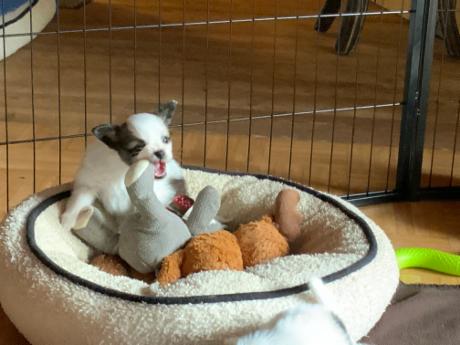 Tag 68: Heute abend kommen Dash's neue Besitzer nochmal zu Besuch, wir erledigen schon alle Formalitäten, damit sie morgen schon früh wieder nach Hause fahren können mit ihrem Zwerg, der dann Doni heißen wird. Ich hatte übrigens noch nie einen Papillon, der so schwer bei der Abgabe war!!! Heute hat er schon 2360 g und wir haben ja noch einen Wiegetag bei ihm!